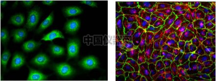 之所能如此簡便完成免疫熒光實驗,是因為這些ibidi培養皿和載玻片的底部為特殊處理的材質,絕大多數細胞可以直接貼壁生長,而不需要另外包被。同時,這些耗材的底部薄如蓋玻片,可以直接使用倒置顯微鏡進行觀察,得到高質量的成像,適用于共聚焦顯微鏡。 成像效果: